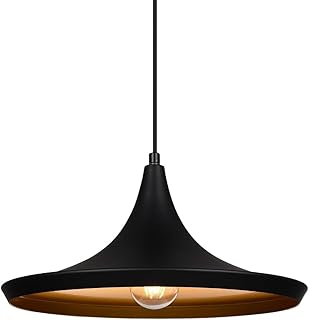 LEDKIA LIGHTING - Lámpara Colgante Metal Presley | Diseño Estilo Kasa Japonés | Altura Regulable | Compatible Bombilla E27 | Acabados Negro y Dorado, Negro, Aluminio