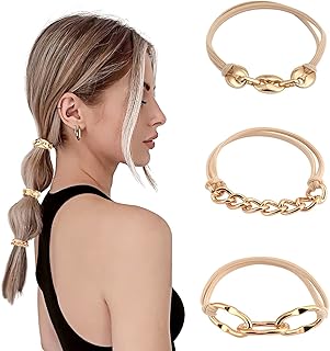 3 gomas para el pelo para cola de caballo, puño de metal dorado, para coletas doradas, gomas para el pelo punk, para accesorios de cabello finos