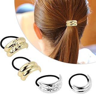 AOZUO 4 Piezas Gomas para el Cabello Doradas para Mujer, Gomas Elásticas de Metal coleteros pelo, Soportes para Cola de Caballo, Accesorios para el Cabello, Gomas para el Cabello de Goma(Oro)